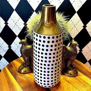Black, White & Gold Polka Dot Ceramic Vase - Gold Neck – 12” Modern Classic