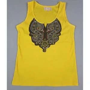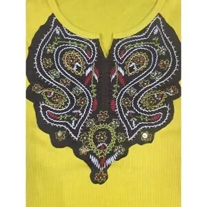 Yellow Vintage 90s Tank Top Women Medium Cotton Embroidered Malaysia Boho Retro