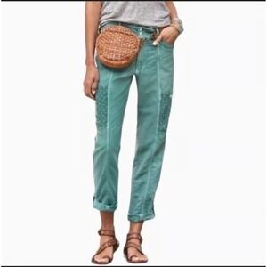Keywords: Anthropologie, Pilcro, lace detail, cargo pants, cropped, cuffed, teal, bohemian, casual, streetwear, summer, spring, travel, resortwear