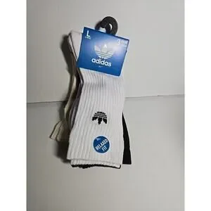 ADIDAS Mens Socks Crew Moisture Wicking Cushioned 3 Pair Shoe Size Large 6-12