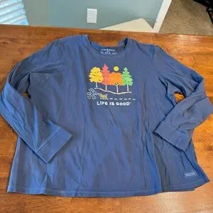 Life Is Good women’s Navy Long Sleeve Tee with Colorful Trees crusher size XXXL