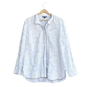 John Mark Top Women’s Size M White Rosette Wired Collar Wearable Artsy Blouse