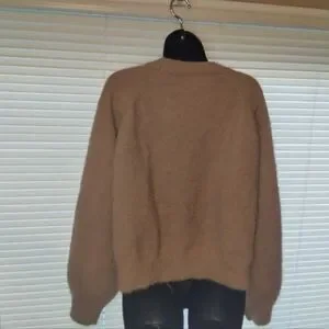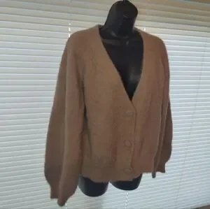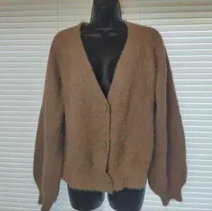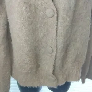Truth By Republic Fuzzy Tan Button Up Textured Knit Cardigan Sweater Size L