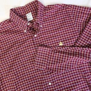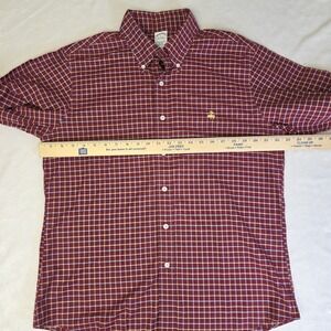 Brooks Brothers Brick Red Mens Large Gold Buffalo Logo Button Down Plaid Shirt