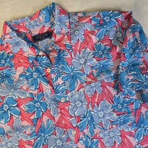 Vineyard Vines Shirt Mens XL Pink Blue Floral Hawaiian Aloha Vacation Button Up