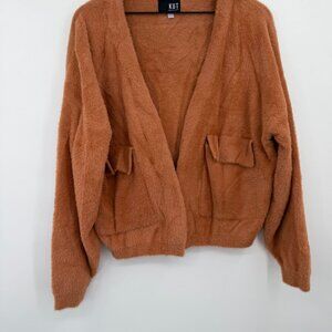 Kut From The Kloth Jana Open Front Fuzzy Cardigan Women Large Rust Relaxed