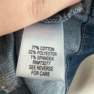 77% cotton, 22% Polyester, & 1% spandex.