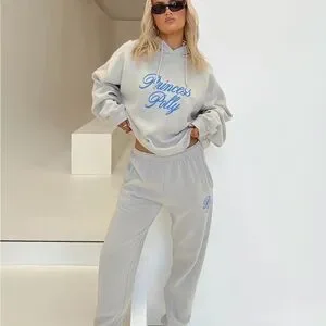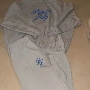 Excellent condition, sweatpants are a size 8 and sweatshirt is a size 12. They will fit the same person, I am a true 6 and like oversized. Such a cute set!