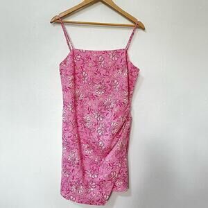 ZARA Floral Faux Wrap Mini Slip Dress Size L Pink Multicolor Barbie Coquette