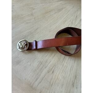 Michael Kors Brown Red Rust Leather Belt MK GOLD Logo Buckle Bling Women’s L/XL