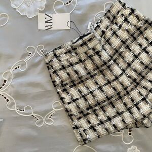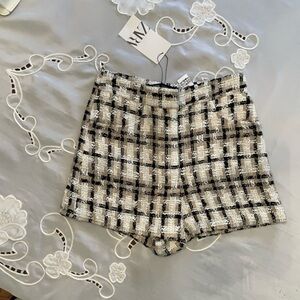 New Zara Highrise Tweed Plaid Fall Style Shorts