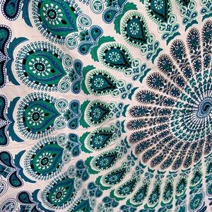 Transform your home with this exquisite peacock mandala wall hanging. The intricate teal and white design adds a touch of sophistication to any space.