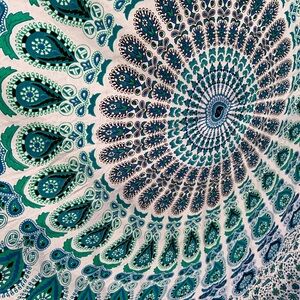 Peacock Mandala Wall Hanging in Teal and White