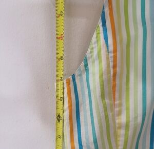 Vintage WHITE LABEL wrap top by Lilly Pulitzer. Featured in a blue, orange & green stripe print with sleeveless styling, making it perfect for warm weather and layering. Tie at the back or the front for a flattering, customized fit. A stylish and iconic addition to your wardrobe from the Lilly Pulitzer brand, known for its vibrant prints and timeless designs. Gently pre-loved with minimal use, see all photos for reference.