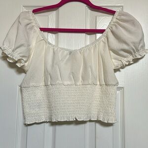 H&M Divided Cream Cropped Peasant Top M NWT