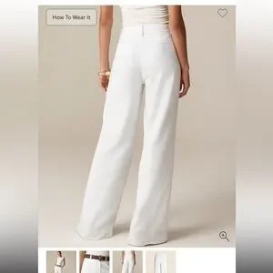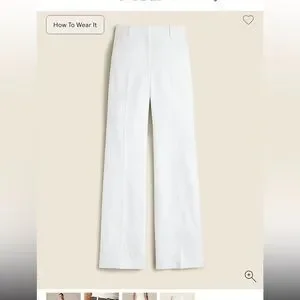 Chic wide leg pants by J. Crew. Soft sage green color. See the pants in shown in white just for style reference. Inseam is 32”. I absolutely love these pants, but they are just a little snug.