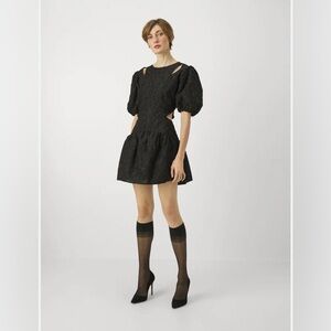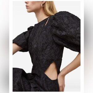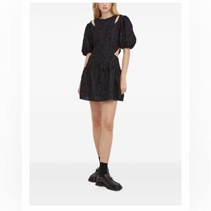 Stunning Day Birger Et Mikkelsen black puff-sleeve cut-out mini dress, perfect for the holiday season, Christmas parties, and New Year’s Eve celebrations. This statement piece features a luxe textured finish, chic shoulder and side cut-outs, and a flattering gathered skirt that creates a feminine, elevated silhouette.