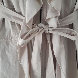 Kenar Ruffled Belted Lined Zipper Trench Coat Tan Cream women's large