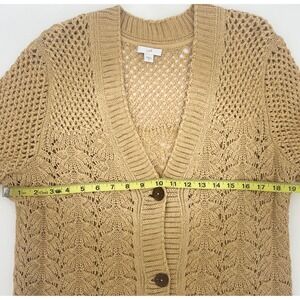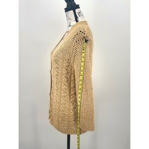 J Jill Mixed Stitch Button Cardigan Sweater Size Medium Honeycomb Tan Open Knit