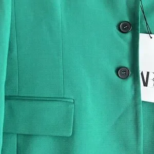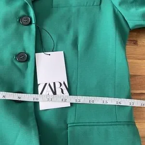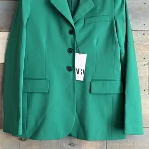 Zara Wool Blend Straight Cut Green Blazer 3 Button