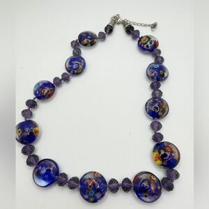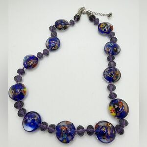 ~21" hand knotted w/ silver tone hardware, Murano and faceted glass necklace!