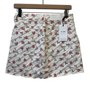 RE/DONE Originals Cargo Rose Print Denim Mini Skirt Size 25