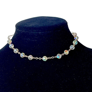 vintage aurora borealis necklace, 60s glass choker, sparkling beaded necklace, prom jewelry, iridescent crystal choker, mid-century accessories, silver tone vintage necklace