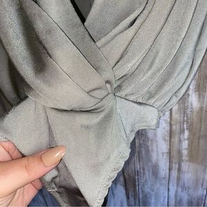 Free People bodysuit, Intimately Free People, metallic silver bodysuit, Turnt Oxide Free People, shimmer bodysuit, date night top, clubwear bodysuit, deep v-neck bodysuit, silver long sleeve top, chic party outfit, trendy Free People piece, elegant bodysuit XS, new Free People top, holiday outfit