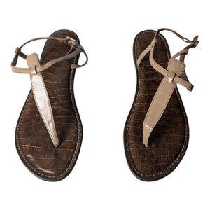 SAM EDELMAN Gigi Tan Patent Leather T Sandal Size 8M