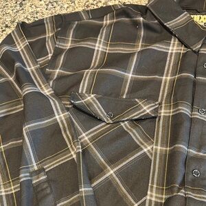 Stylish black plaid shirt perfect for any occasion. Comfortable and durable fabric. Worn once, no holes or stains!
