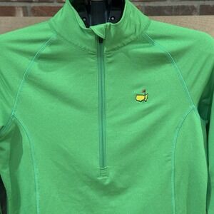 Classic performance style meets iconic golf heritage in this bright green quarter-zip pullover featuring the embroidered Masters Tournament logo on the chest. Designed with a sleek, athletic fit, this lightweight layer is perfect for golf days, outdoor workouts, or casual sporty outfits.