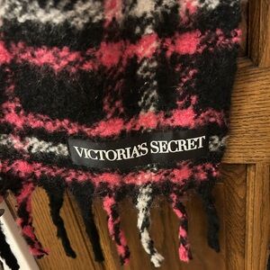 Stylish black and pink Victoria’s Secret plaid scarf with fringe detailing. Perfect for adding a pop of color to your winter outfit! Excellent used condition! Like new!