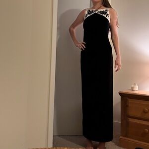 Lauren Ralph Lauren Evening Gown Black and White Dress with Sequin Detail