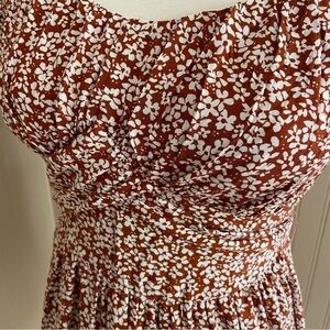 Endless Blu NWT Brown/Rust Coloured Floral Print Flowy Dress Size S