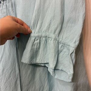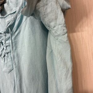 Lane Bryant Plus 22/24W Linen Rayon Peasant Blouse Top Seafoam Aqua Tie Neck