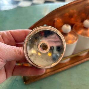 Vintage copper ceramic spice jar set wall mount shelf with rack mcm mid century