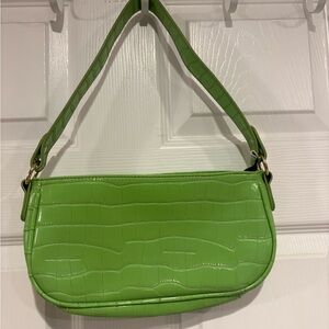 Elevate your style with this chic green croc-embossed shoulder bag. Perfect for any occasion, this bag adds a touch of elegance to your outfit.