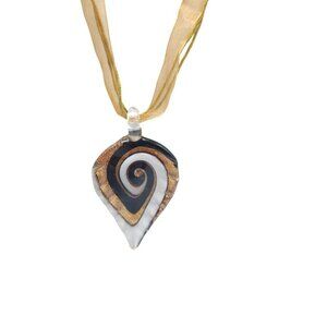 Multi-Color Venetian Glass Teardrop Pendant Ribbon Necklace Lobster Clasp VTG