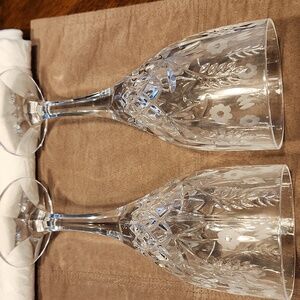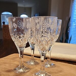 Enhance your dining experience with this elegant crystal wine glass set. Featuring a beautiful floral design, these clear glasses add a touch of sophistication to any table setting.