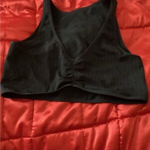 Stylish black crop top by Colsie. Features a deep V-neck and ruched front. Perfect for casual wear. NWOT