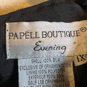 Papell Boutique Evening Black & Silver Embroidered Top filled w/ beaded. Size 1X