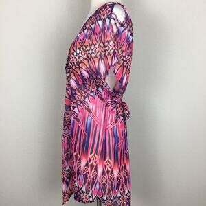 Becca Pink Multi Color Print Sheer Swim Cover M/L