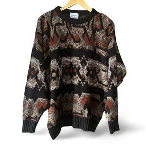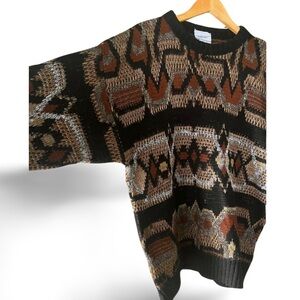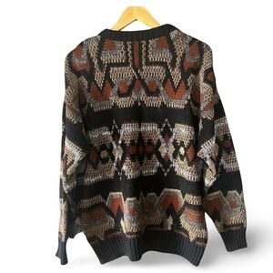 Bellissimo vintage wool blend Geometric Sweater - Black and Brown Unisex