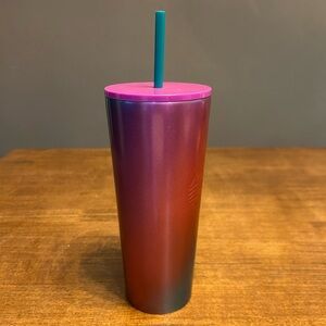 Sleek Starbucks tumbler with a striking pink and blue gradient. Perfect for stylish sipping on the go. Comes with a matching straw! 24oz
