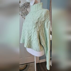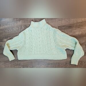 Free People Merry Go Round Cable Knit Sweater Women's XS Mint Oversized Cropped