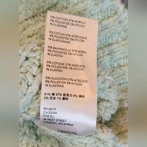 Material: 51% Cotton 37% Acrylic 9% Polyester 2% Nylon 1% Elastane