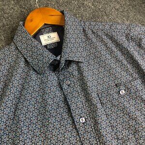 7 Diamonds Shirt Mens Medium Blue Geometric 4 Way Stretch Short Sleeve Golf