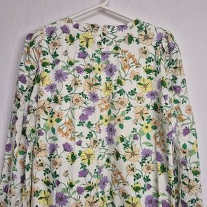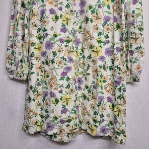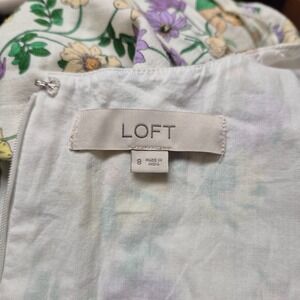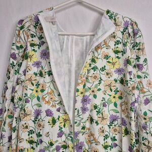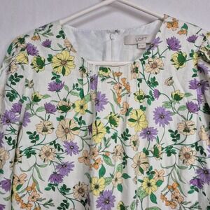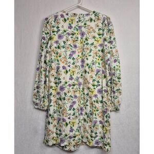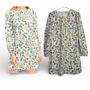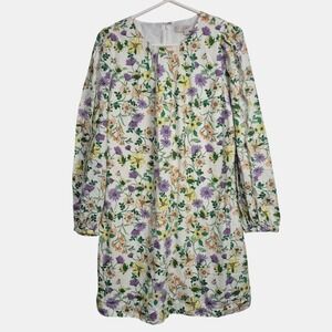 LOFT Women 8 Linen Blend Floral Long Sleeve Shift Dress Whisper White Romantic