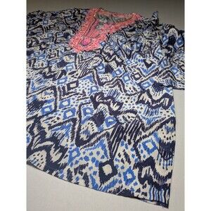 Lilly Pulitzer XL100% Silk Blue Renato Tunic Top Shirt Beaded Neckline Embellish
