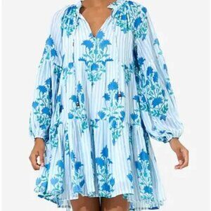 Oliphant Balloon Sleeve Jaipur Blue Stripe Cotton Dress
